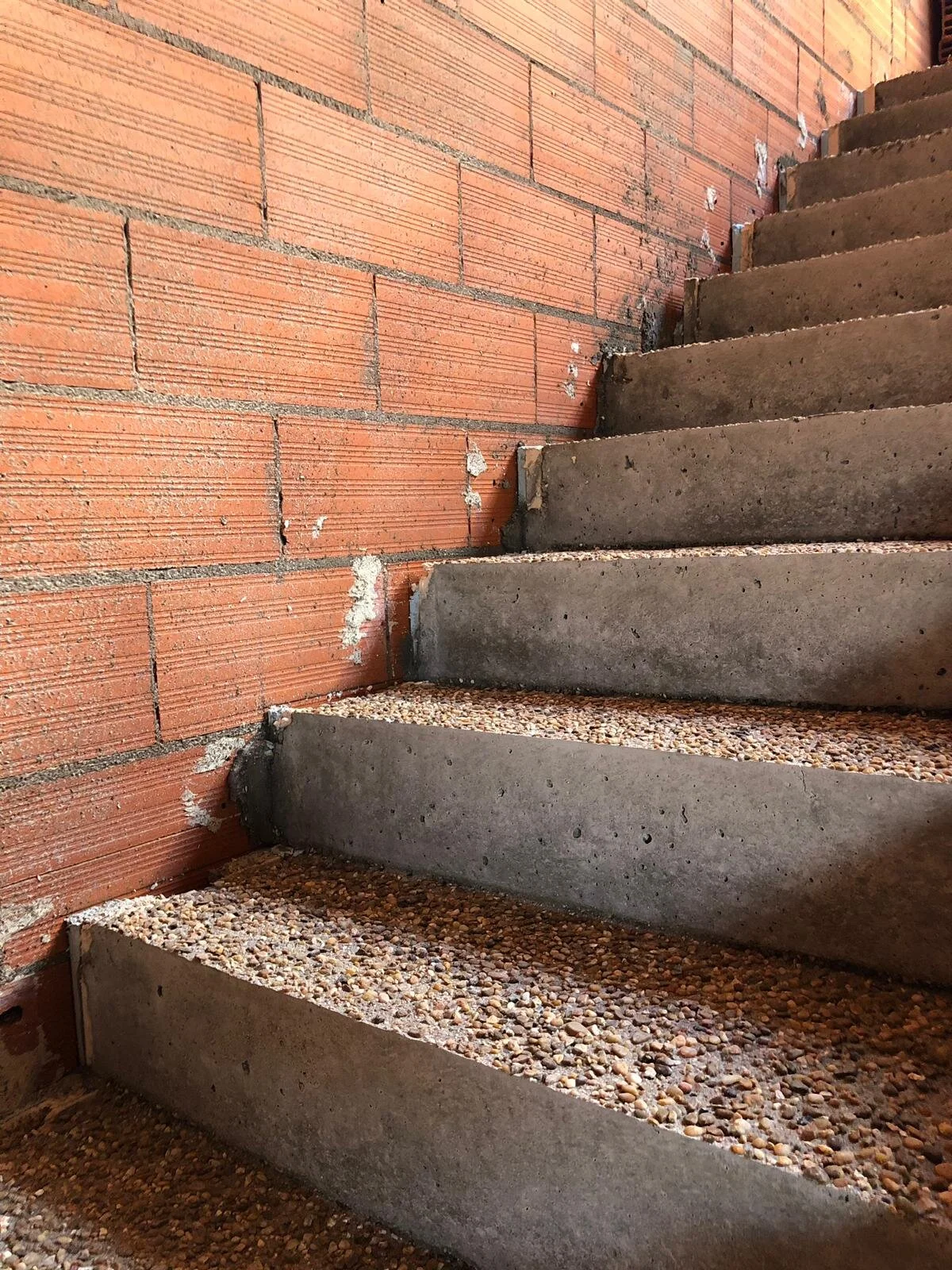El proyecto trabaja principalmente con la condición pétrea. Desde la primera fase la vivienda se apuesta por esta decisión, construyéndose estructuralmente en hormigón, la piedra del SXXI. Las escaleras realizadas de guijarros graníticos del río abulense compactadas con cemento, que hacen de ésta una pieza escultórica. La fachada, la cubierta, los lavabos, los revestimientos de baños y cocinas, las puertas e incluso en las mesas se apuesta por esta materialidad.